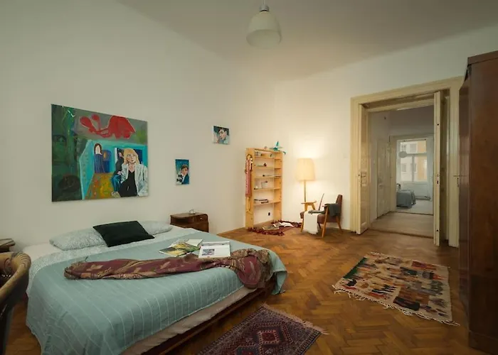 דירת Artisan & Old-Timey 2 Bedrooms Home מציעה חדרים עם נופים של חצר פנימית ומיקום במרחק של 1.2 ק"מ בלבד על כיכר ואצלב. דירה זו כוללת חדרים עם ספה, שולחן עבודה וציוד להכנת תה וקפה ומטבח מצויד.